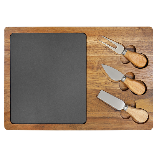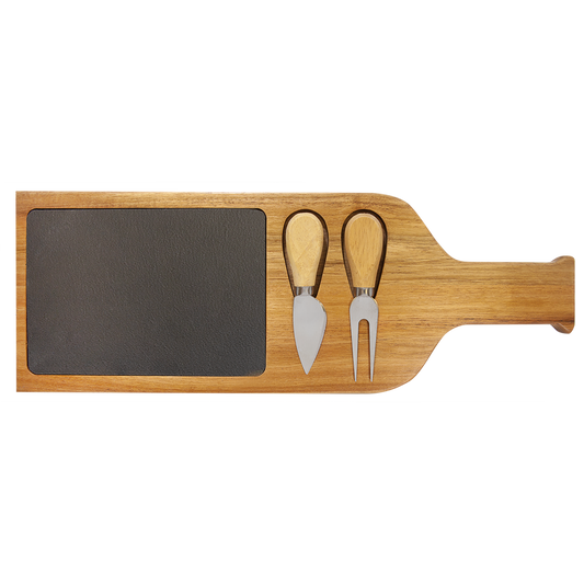 Acacia Wood & Slate Cheese Paddle Board With Tools