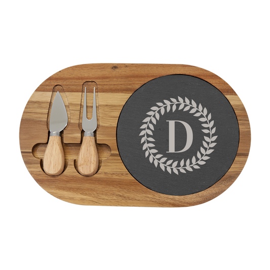Acacia Wood & Slate Oval Cheese Board With Tools
