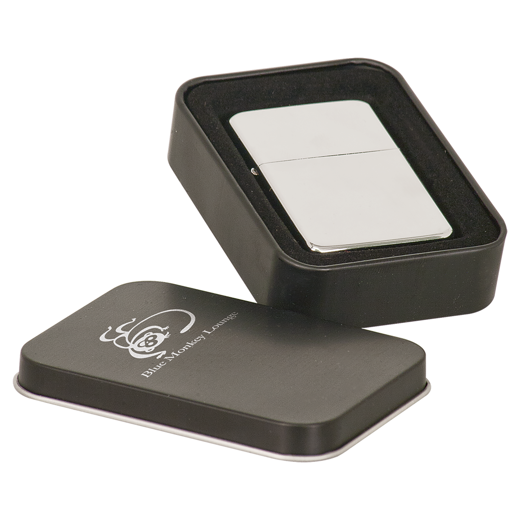 - Chrome lighters in customizable metal tin are great for gifts, promotions & incentives